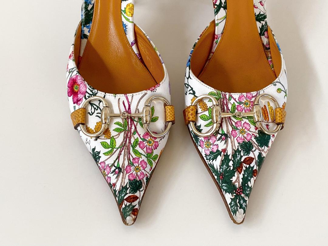Enjoy Free Shipping Returns Complimentary Gift Wrapping. Then Grace Kelly on a visit to the boutique in Milan inspired Rodolfo Gucci to work with Italian illustrator and Gucci textile designer Vittorio Accornero on the Flora print in 1966. These Gucci Flora Pointy Toe MulesSlides Size US 8 Regular M B are a top 10 member favorite on Tradesy.